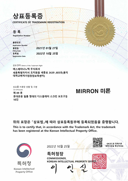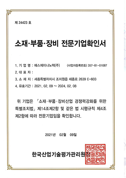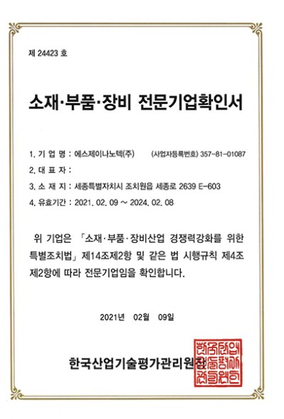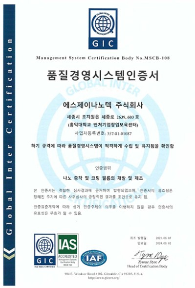 특허 현황 & 인증서 1 페이지 > 에스제이나노텍